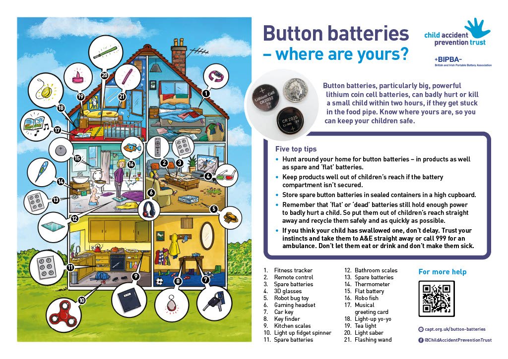 For more information, please visit Button Battery Safety | Child Accident Prevention Trust (capt.org.uk)