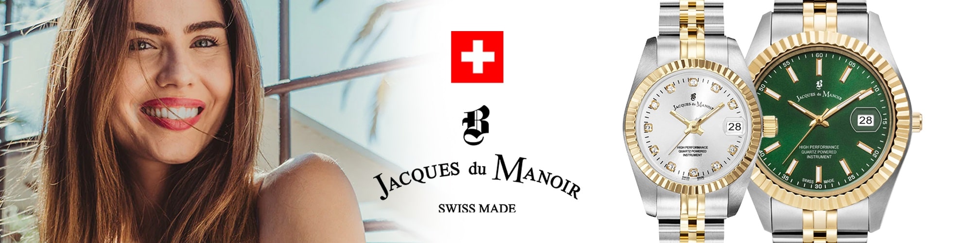 Trendy, traditional and elegant, Jacques du Manoir watches are loved all over the world by customers looking for a bit of luxury at realistic prices. With an amazing choice of models, Jacques du Manoir are currently one of the most dynamic brands within this price range. Furthermore, the authentic SWISS MADE label on every watch further ensures that each Jacques du Manoir watch is a top-quality product made in Switzerland.Jacques du Manoir watches are perfect for everyday wear as well as attending a black-tie event - the designs are everlasting and continually push boundaries. The collection includes stainless steel and rose/gold plating with crystal set dials and bezels perfect for those who love a bit of glam. With stunning coloured dials, date windows and adjustable bracelets, all Jacques du Manoir watches are perfect for the modern, discerning customer.