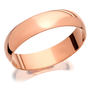 Possibly the second most popular profile of ring, the ring is flat on the inside but is rounded on the outside, creating a 'D' when in profile. It looks similar to a court ring, but uses less metal making it a cheaper option. D-Shape wedding rings tend to feel sharper than court rings.
