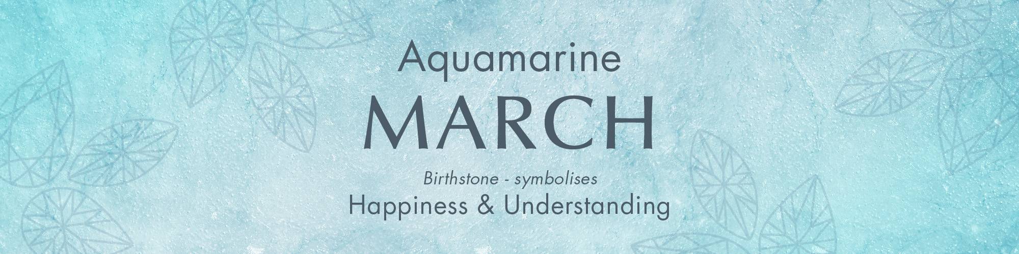 Aquamarine is said to symbolise happiness and understanding.Colour: Transparent pale-blue stone from the beryl family, which also includes emerald. Ideally a pastel sea-blue; clear blue stones with no green or grey are generally the most valuable.