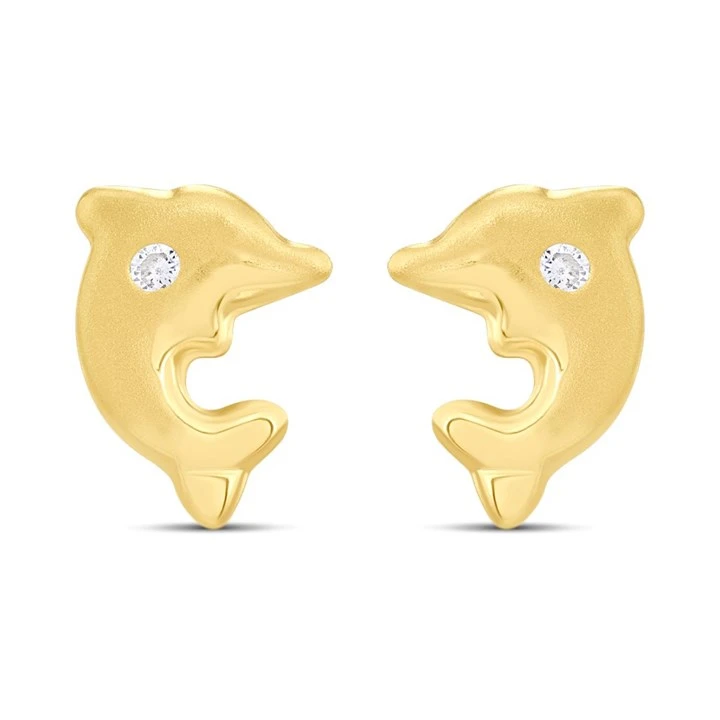14ct Gold Dolphin CZ Stud Earrings - G1335
