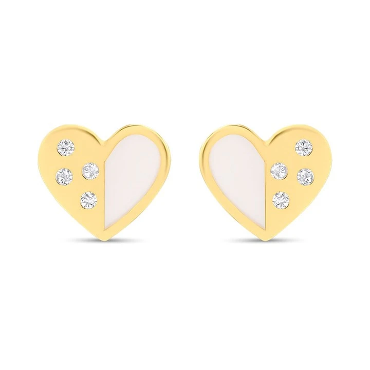 14ct Gold Mother Of Pearl CZ Heart Stud Earrings - G1319