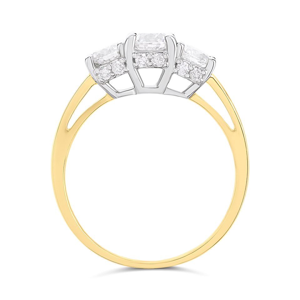 Three stone rings represent the past, present and future and together offer an alternative to a single stone, cluster or wide band ring. Trilogy rings are so versatile they can be worn as an engagement ring or fancy dress ring and often consist of diamonds as well as different gemstones of varying shapes and sizes.