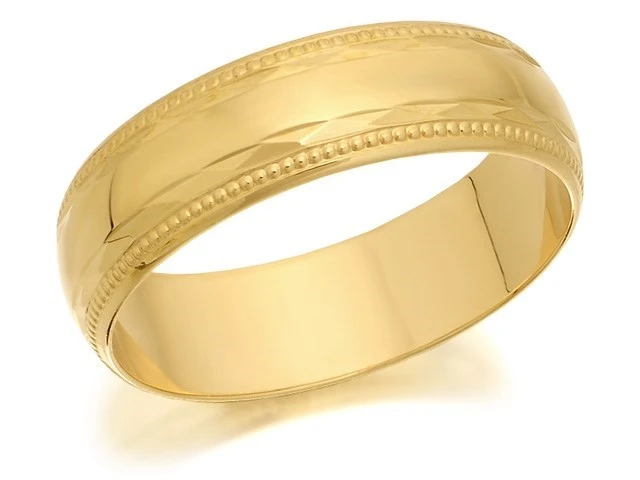 18ct Gold Beaded Edge Wedding Ring - 5mm - Size O Only - Z26334-O