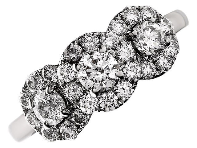 18ct White Gold 1 Carat Canadian Rocks Diamond Trilogy Cluster Ring - Certificated - D0961