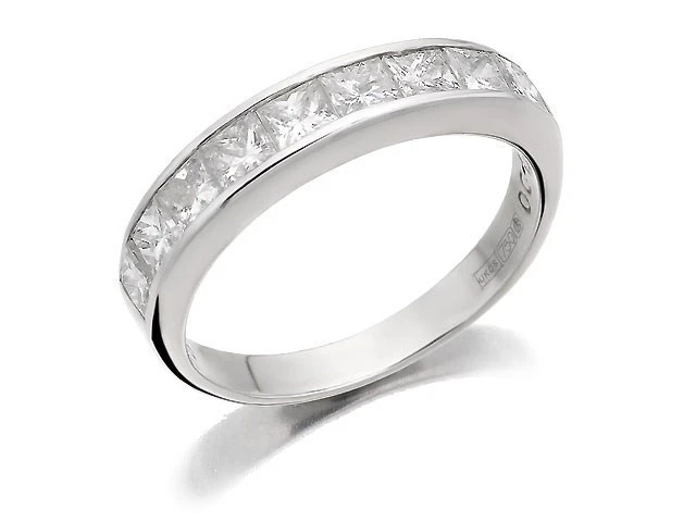 18ct White Gold 1 Carat Princess Cut Diamond Half Eternity Ring - D0724