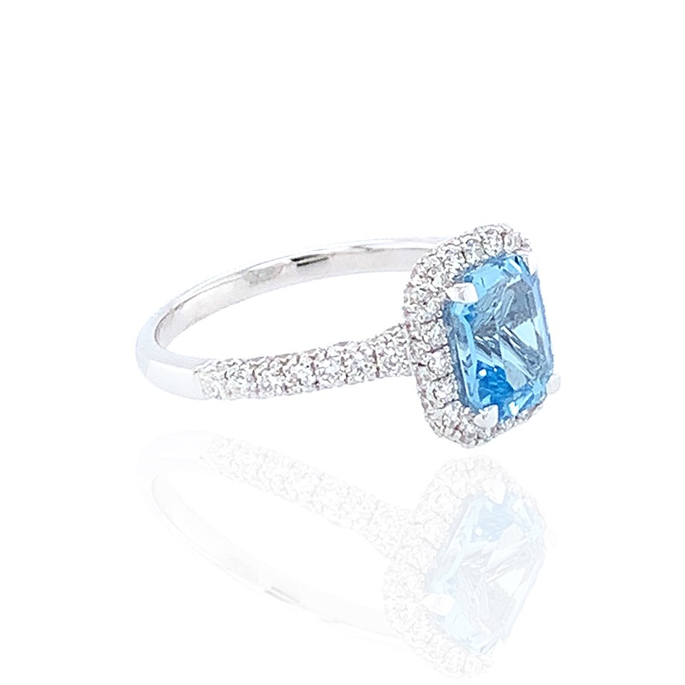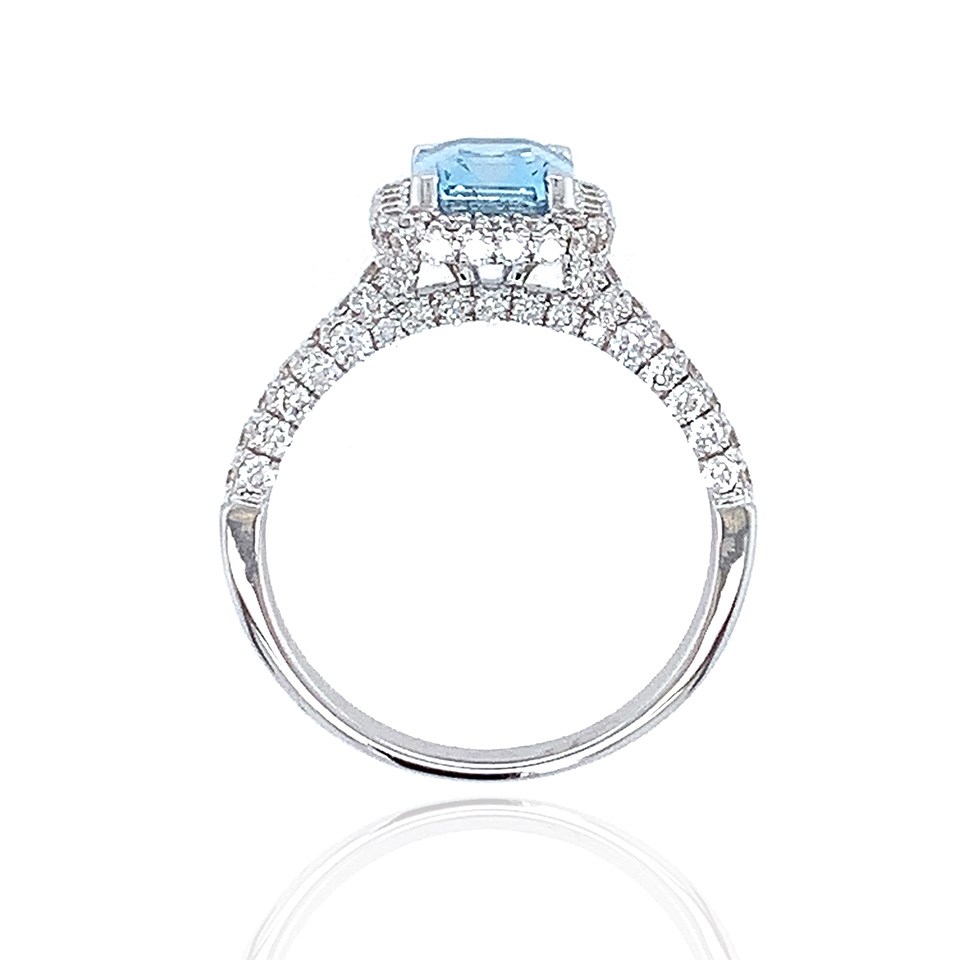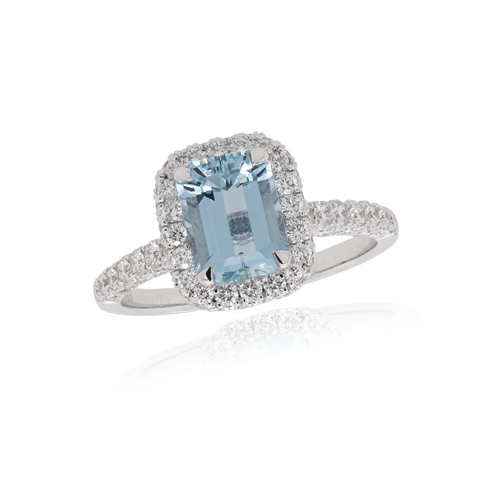 18ct White Gold Aquamarine And 1.16 Carat Diamond Cluster Ring - D4107