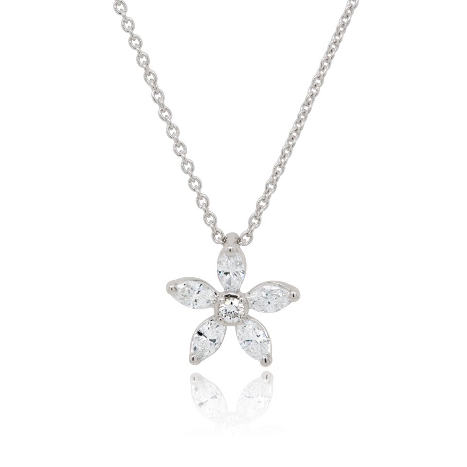 18ct White Gold Diamond Flower Necklace - 30pts - D4536