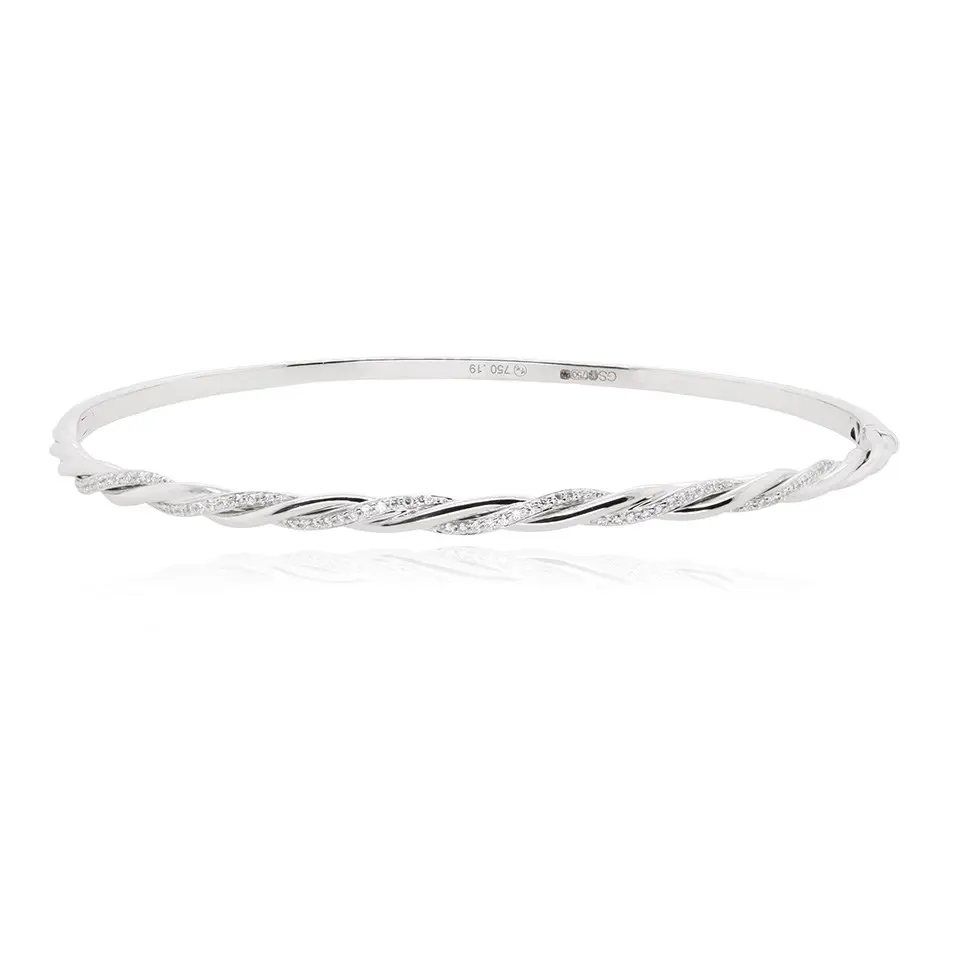 18ct White Gold Diamond Plaited Bangle - 19pts - D4622