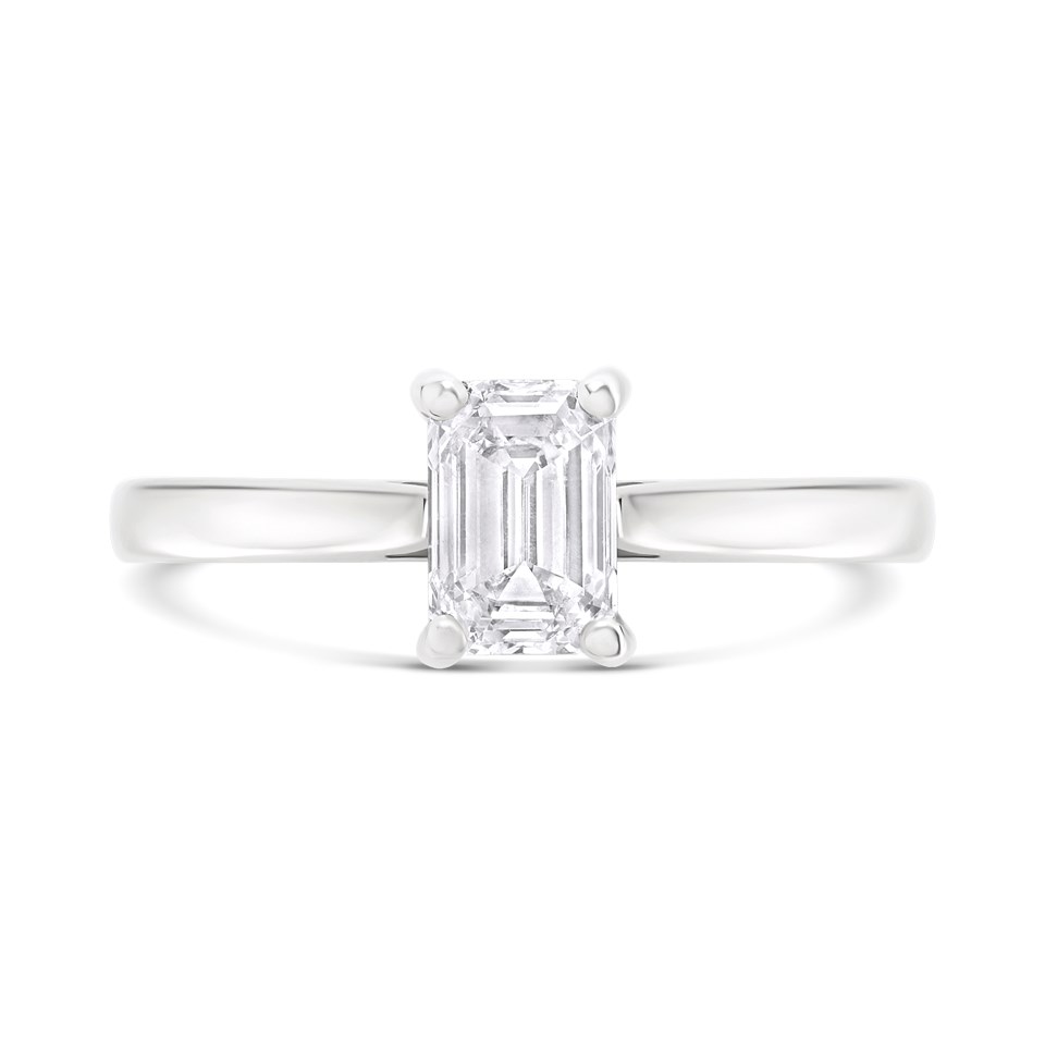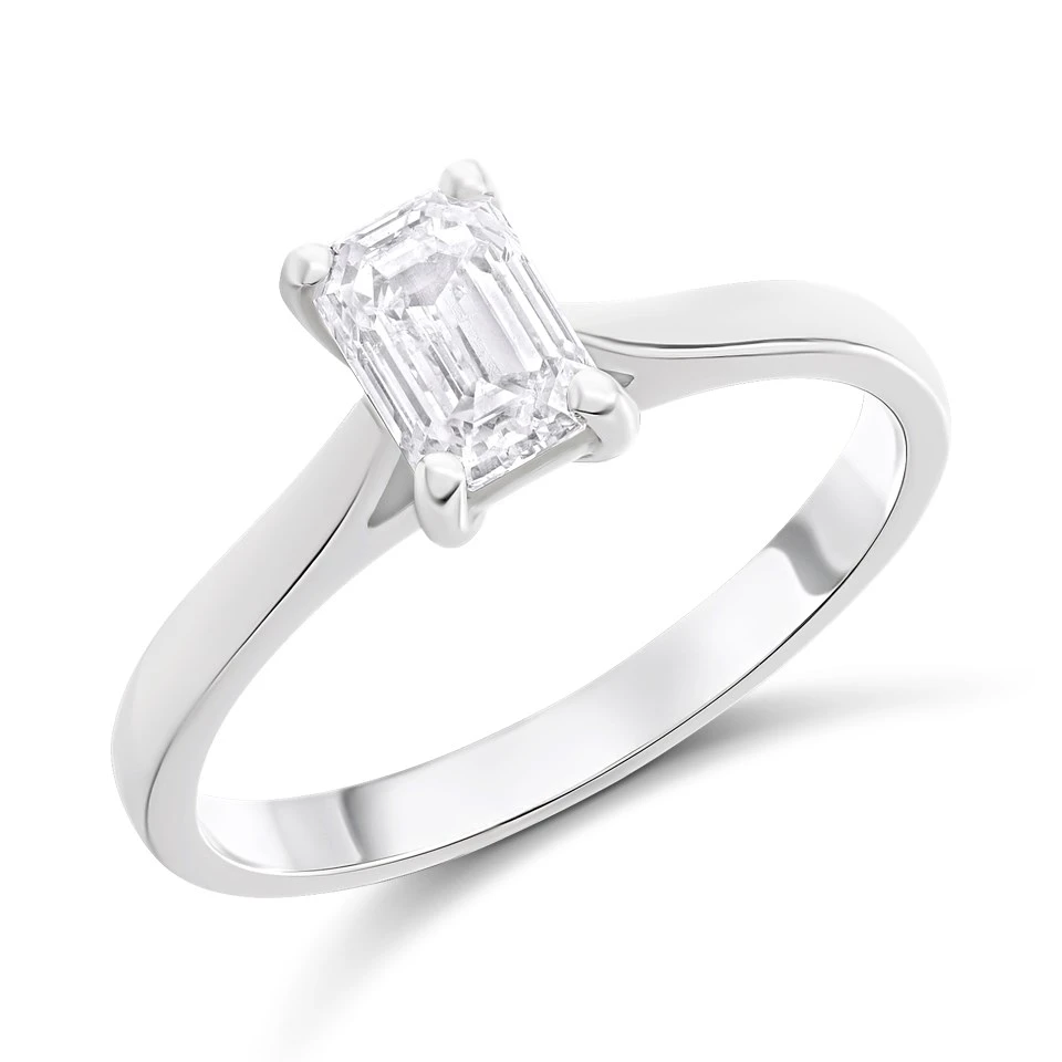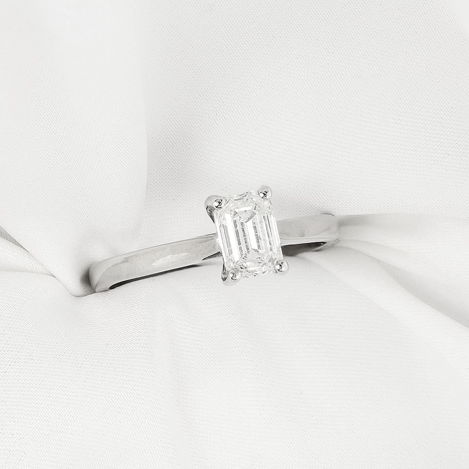 The emerald cut diamond is carefully selected for its exceptional brilliance, delivering unmatched sparkle and radiance. Set in a sleek, high-quality platinum band, this solitaire ring emphasises the diamond's natural beauty, creating a classic look.