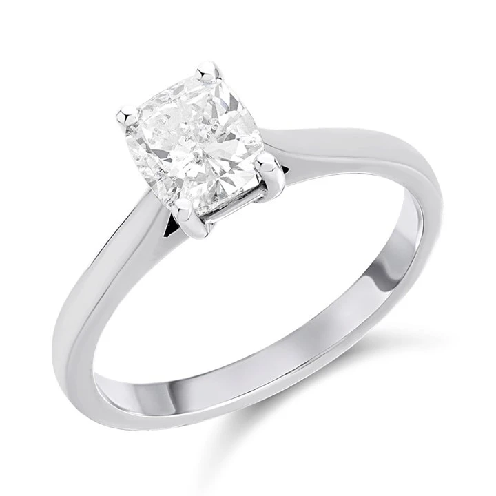 Celebrate your love with the stunning Solitaire Diamond Engagement Ring, a symbol of timeless elegance and commitment. Featuring a single, cushion cut diamond, this classic design is crafted to perfection in our UK workshop. The polished 18ct white gold solitaire setting elegantly showcases the diamond, allowing its natural sparkle to shine through with every movement.
