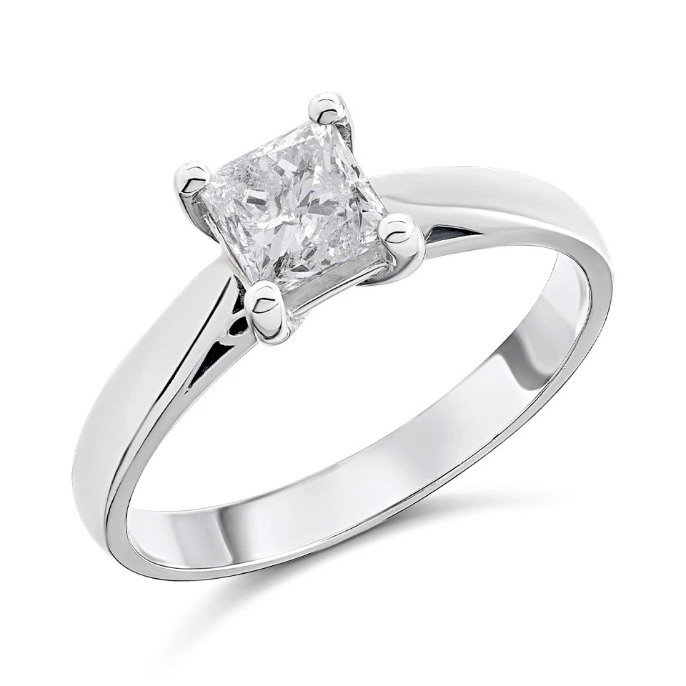 The princess cut diamond is carefully selected for its exceptional brilliance, delivering unmatched sparkle and radiance. Set in a sleek, high-quality gold band, this solitaire ring emphasises the diamond's natural beauty, creating a classic look.
