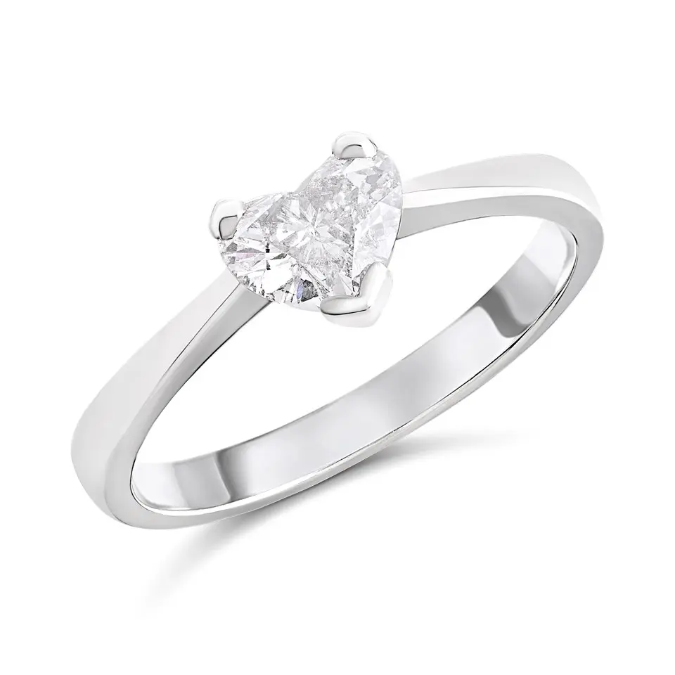 The heart cut diamond is carefully selected for its exceptional brilliance, delivering unmatched sparkle and radiance. Set in a sleek, high-quality gold band, this solitaire ring emphasises the diamond's natural beauty, creating a classic look.