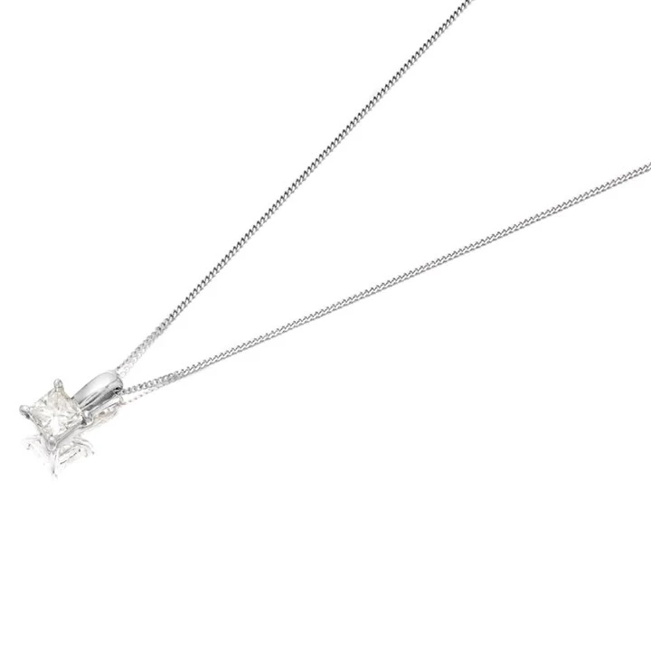 Expertly crafted in 18ct white gold in our UK workshop, this pendant showcases a princess cut, ethically sourced natural diamond, designed to capture and reflect light with every movement.