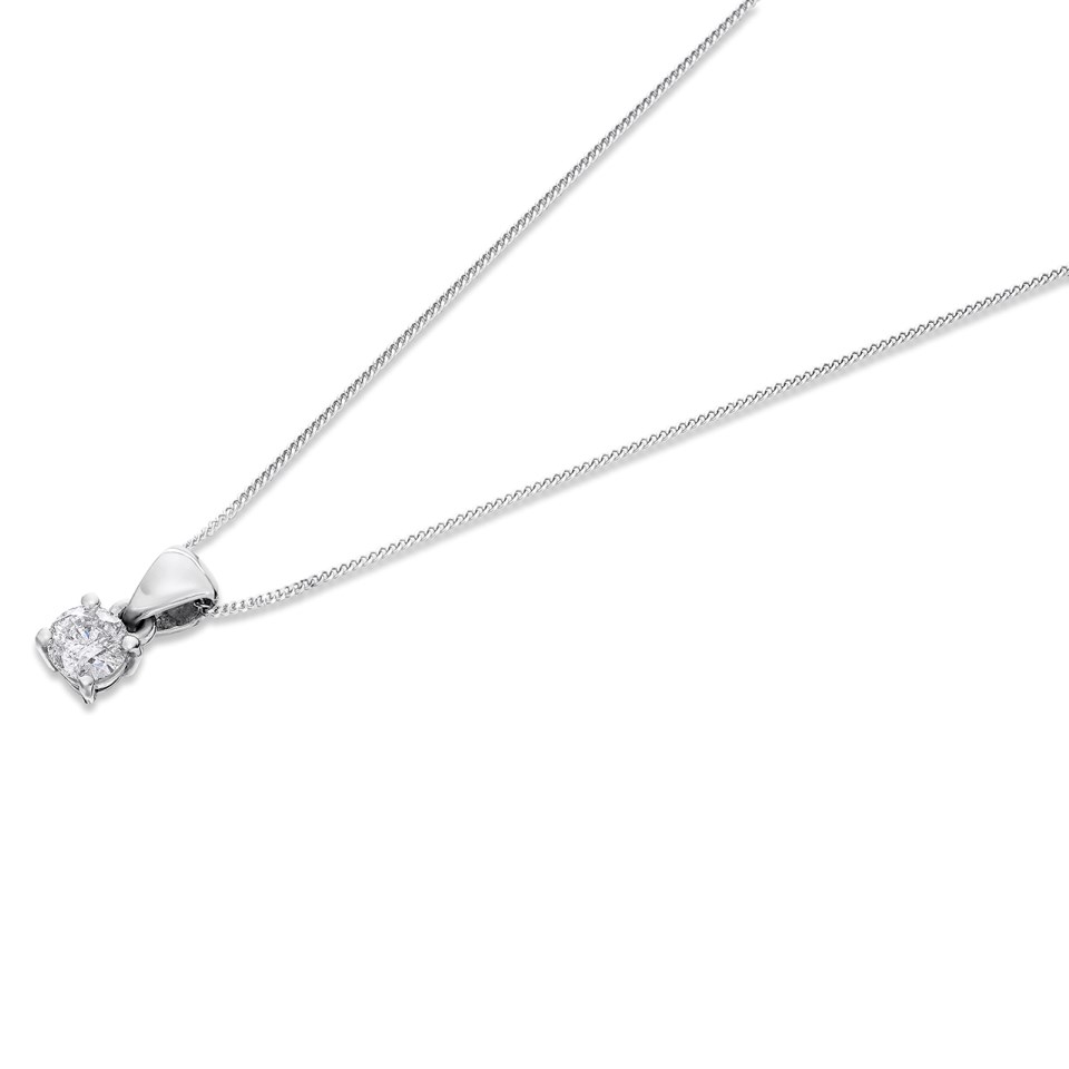 Expertly crafted in 18ct white gold in our UK workshop, this pendant showcases a round brilliant cut, ethically sourced natural diamond, designed to capture and reflect light with every movement.