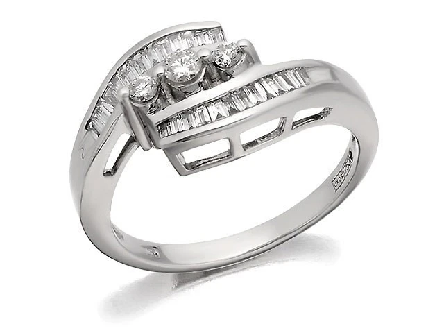 18ct White Gold Diamond Trilogy Crossover Ring - 1/3ct - D0729-I