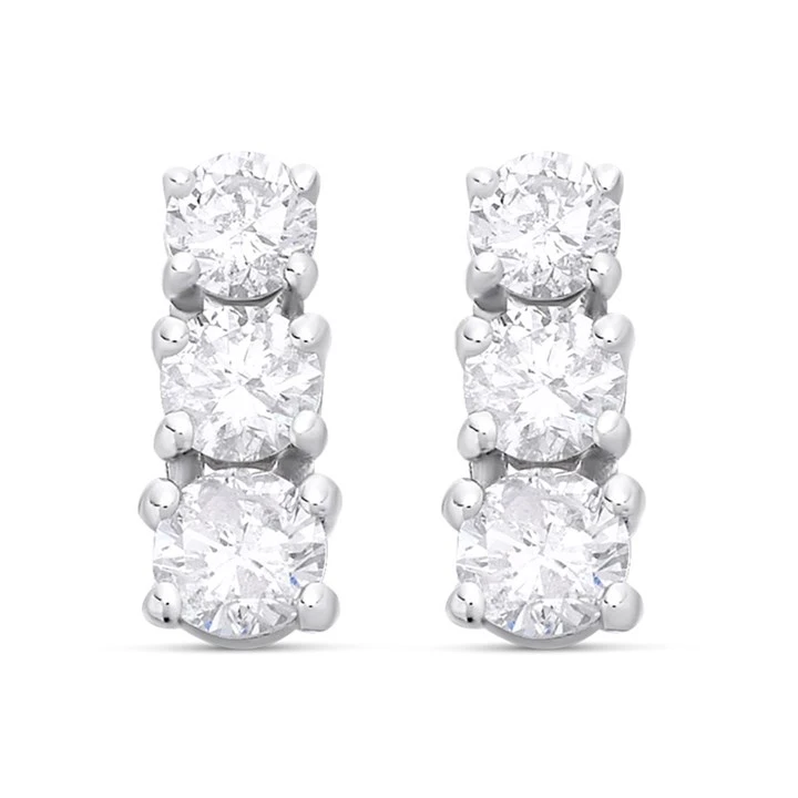 18ct White Gold Diamond Trilogy Stud Earrings - 60pts per pair - X11287