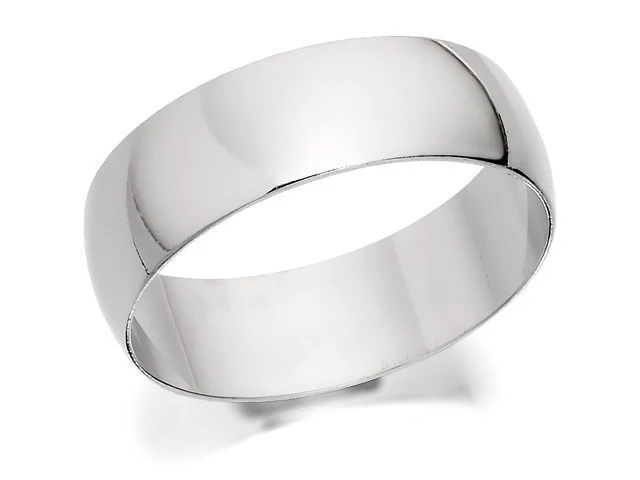 18ct White Gold Heavyweight D Shaped Wedding Ring - 7mm - R56227