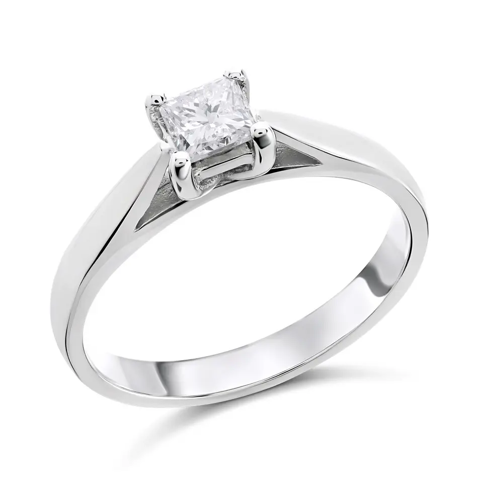 18ct White Gold Princess Cut Diamond Solitaire Ring - 35pts - AGI Certificated - D0706