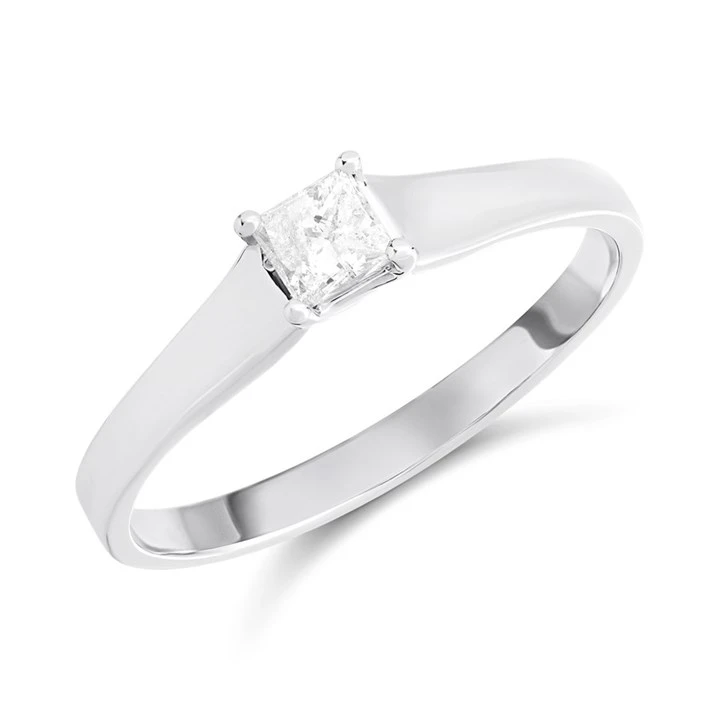 18ct White Gold Princess-Cut Diamond Single Stone Ring, 1/4ct - D0749
