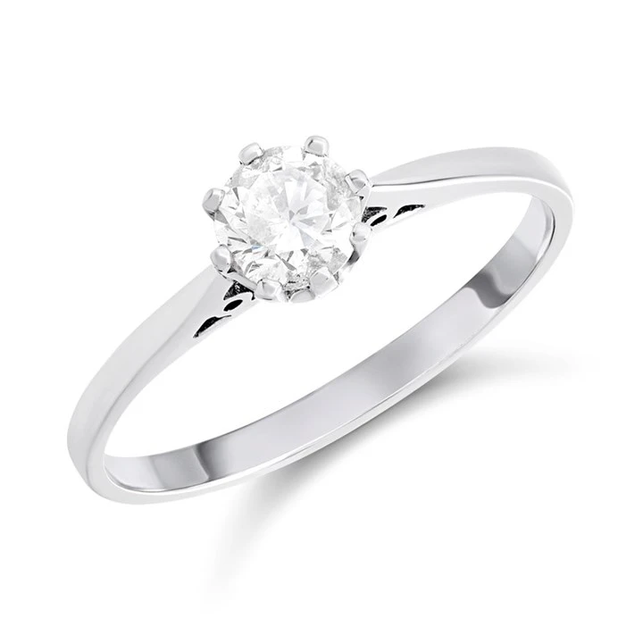 18ct White Gold Solitaire Diamond Ring, 1/2ct - D0745