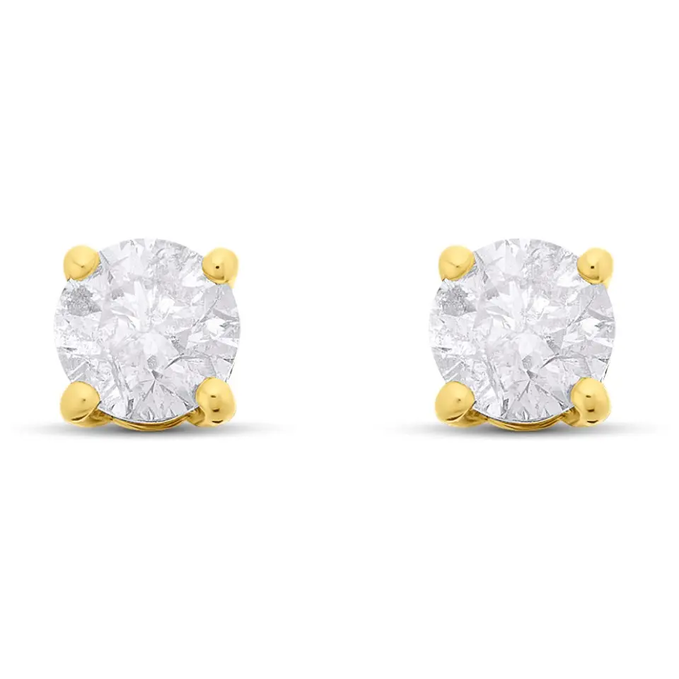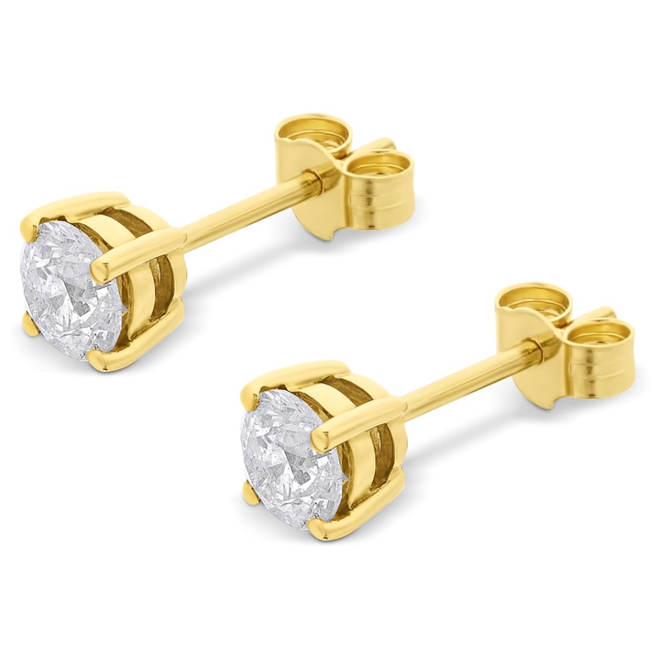 18ct Yellow Gold Diamond Solitaire Earrings - 1.03ct per pair - G-H/I2 - H1001