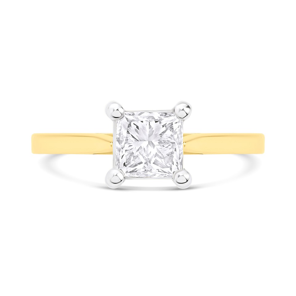 Celebrate your love with the stunning Solitaire Diamond Engagement Ring, a symbol of timeless elegance and commitment. Featuring a single, princess cut diamond, this classic design is crafted to perfection in our UK workshop. The polished 18ct yellow gold solitaire setting elegantly showcases the diamond, allowing its natural sparkle to shine through with every movement.