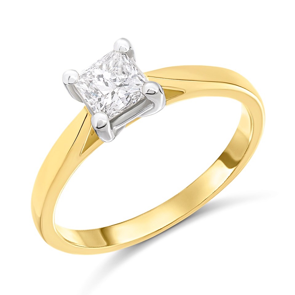 The princess cut diamond is carefully selected for its exceptional brilliance, delivering unmatched sparkle and radiance. Set in a sleek, high-quality gold band, this solitaire ring emphasises the diamond's natural beauty, creating a classic look.