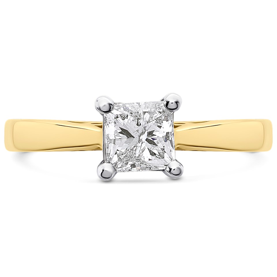 The princess cut diamond is carefully selected for its exceptional brilliance, delivering unmatched sparkle and radiance. Set in a sleek, high-quality gold band, this solitaire ring emphasises the diamond's natural beauty, creating a classic look.