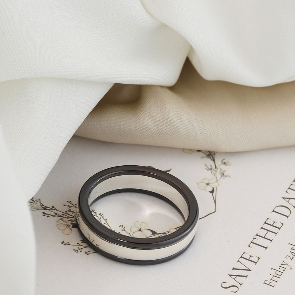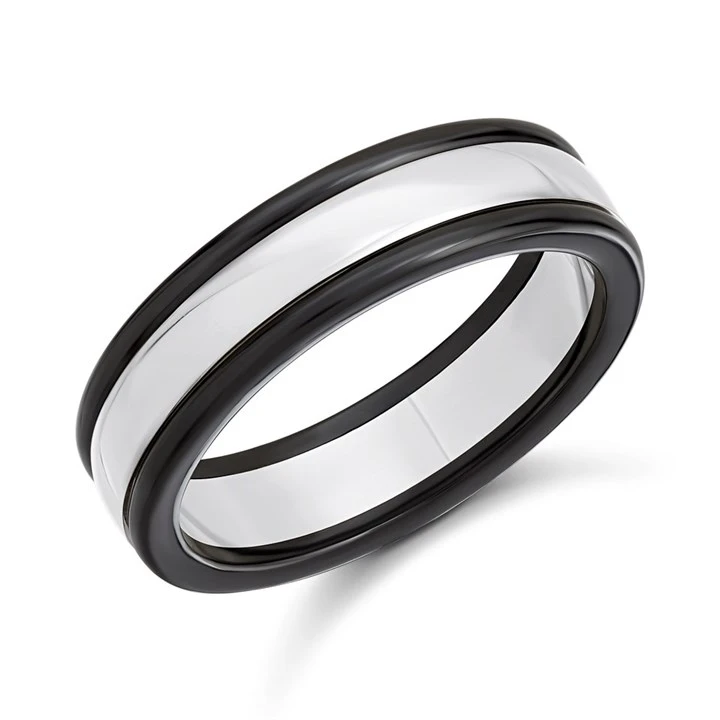 6MM Matt Zirconium And Polished Silver Ring - R4909