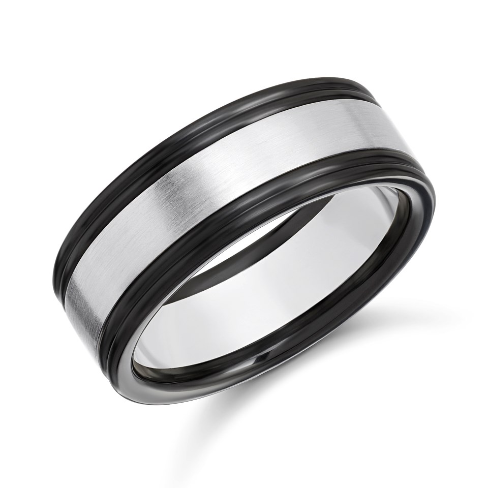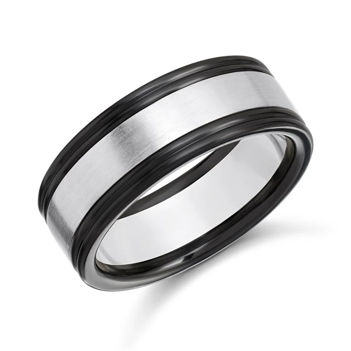 8mm Matt Zirconium And Polished Silver Ring - R4910