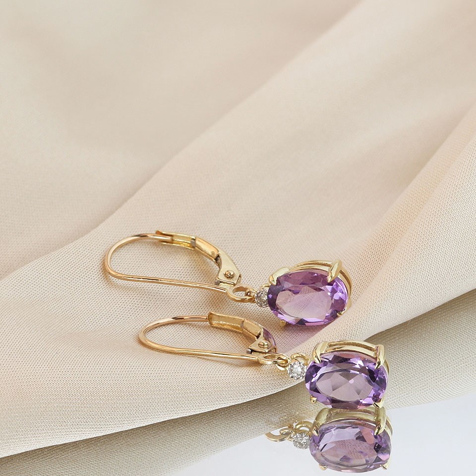 9ct Amethyst And Diamond Drop Earrings - D94122
