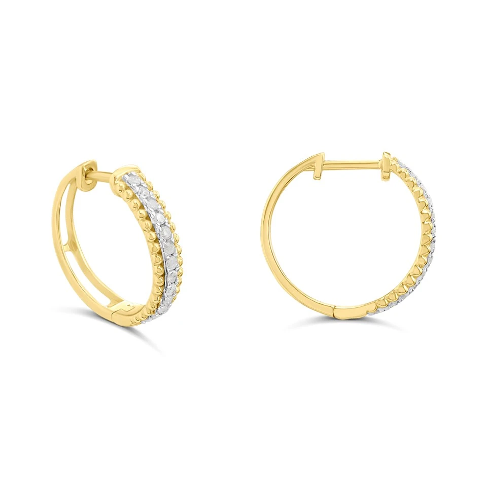 9ct Beaded Edged Diamond Huggie Earrings, 20pts/pair - D96114