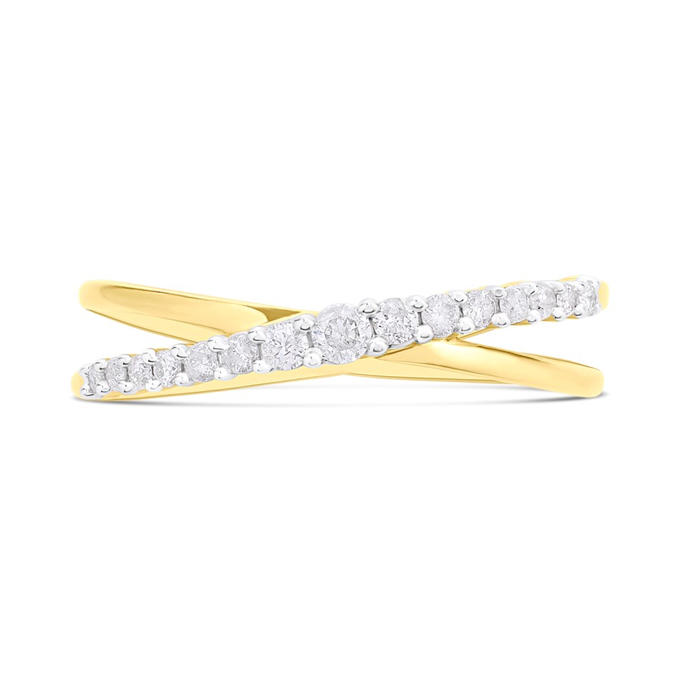 9ct Cross-Over Diamond Half Eternity Ring, 20pts - D80140