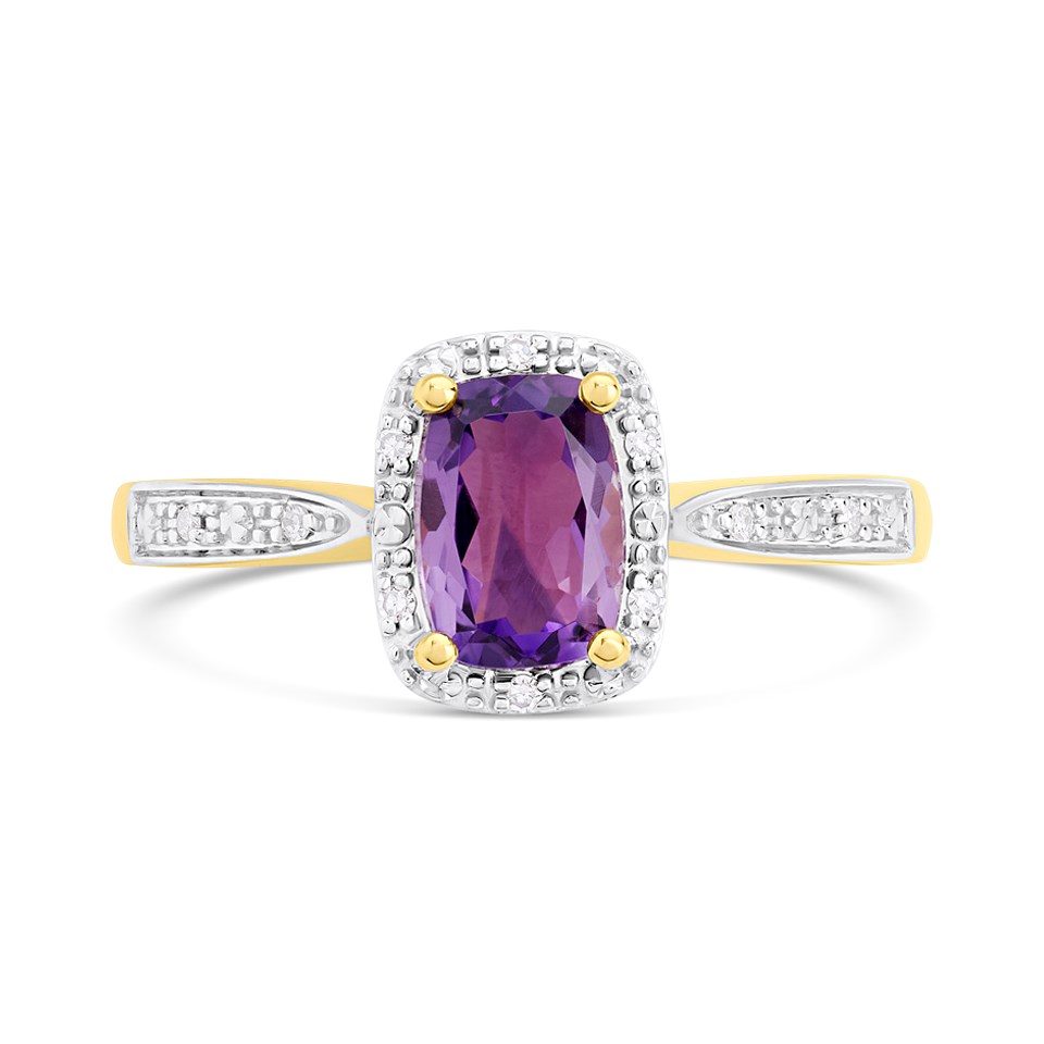 9ct Cushion Amethyst And Diamond Cluster Ring - D84108