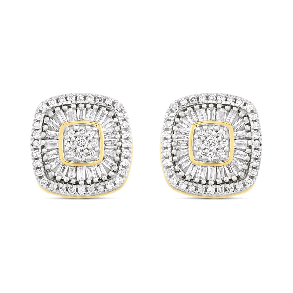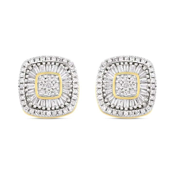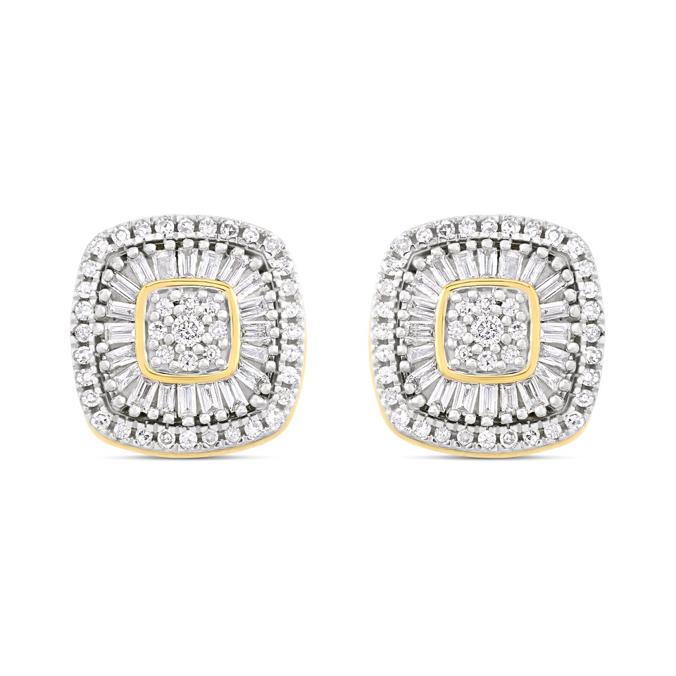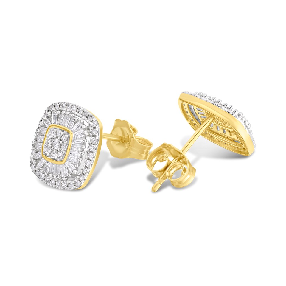9ct Cushion-Shaped Diamond Cluster Stud Earrings, 35pts/pair - D96102