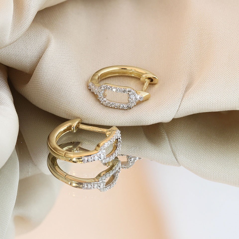 9ct Diamond-Set Open Rectangle Huggie Earrings - D96113