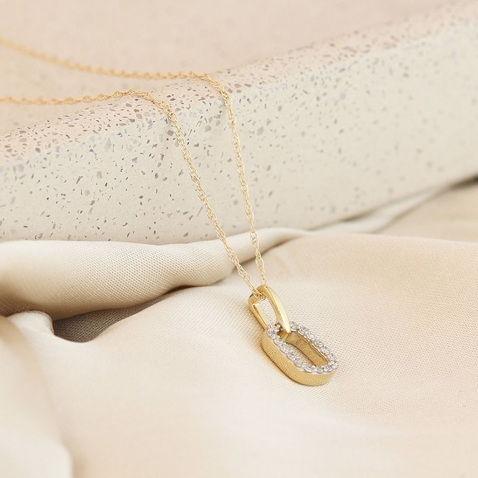 9ct Diamond-Set Open Rectangle Necklace - D97142