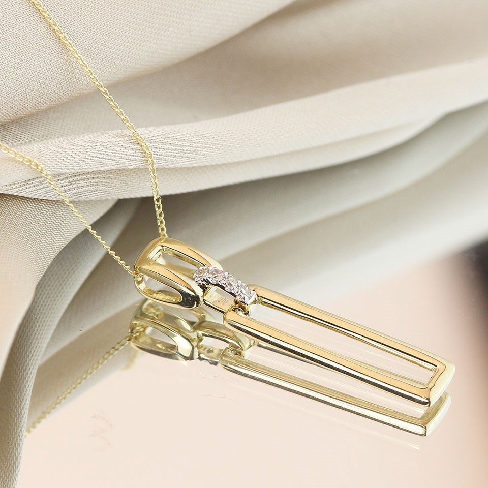 9ct Double Open Rectangular Diamond Necklace - D97134