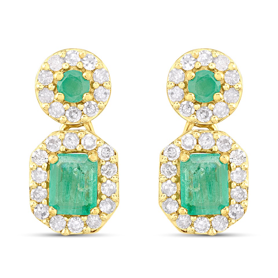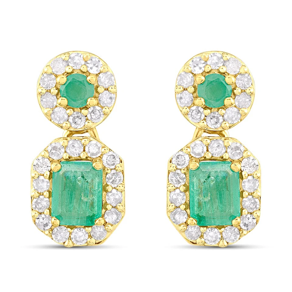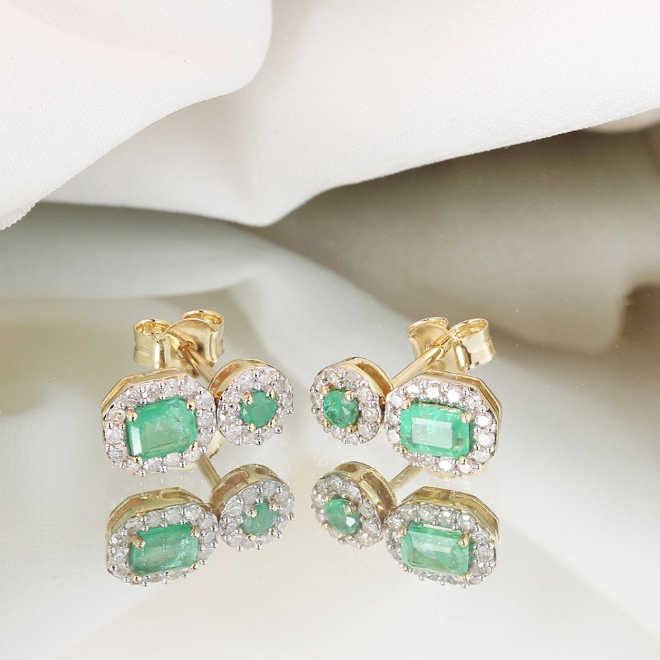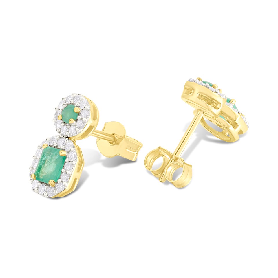 9ct Emerald And Diamond Double Cluster Drop Earrings - D94133