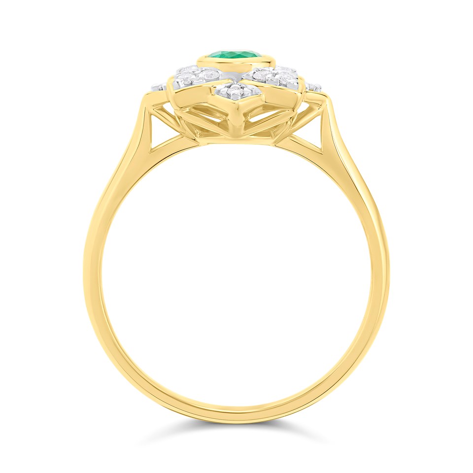 9ct Emerald And Diamond Round Cluster Ring - D7641