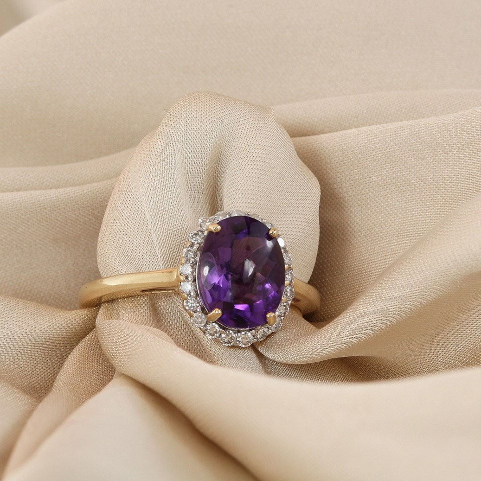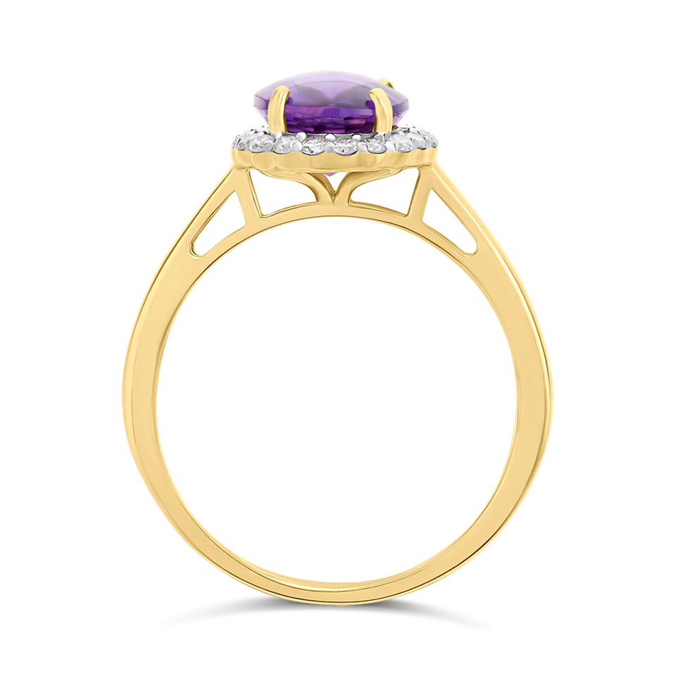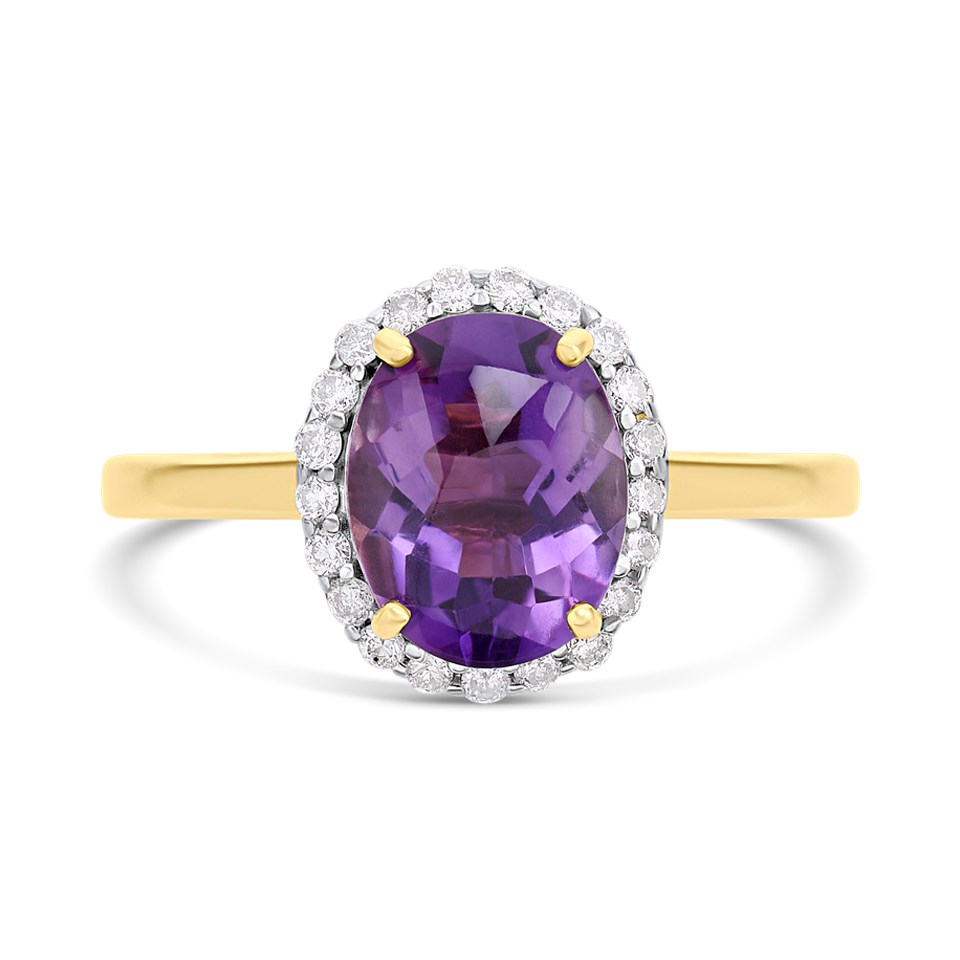 9ct Gold Amethyst And Diamond Cluster Ring - 1/4ct Size R - Z51182