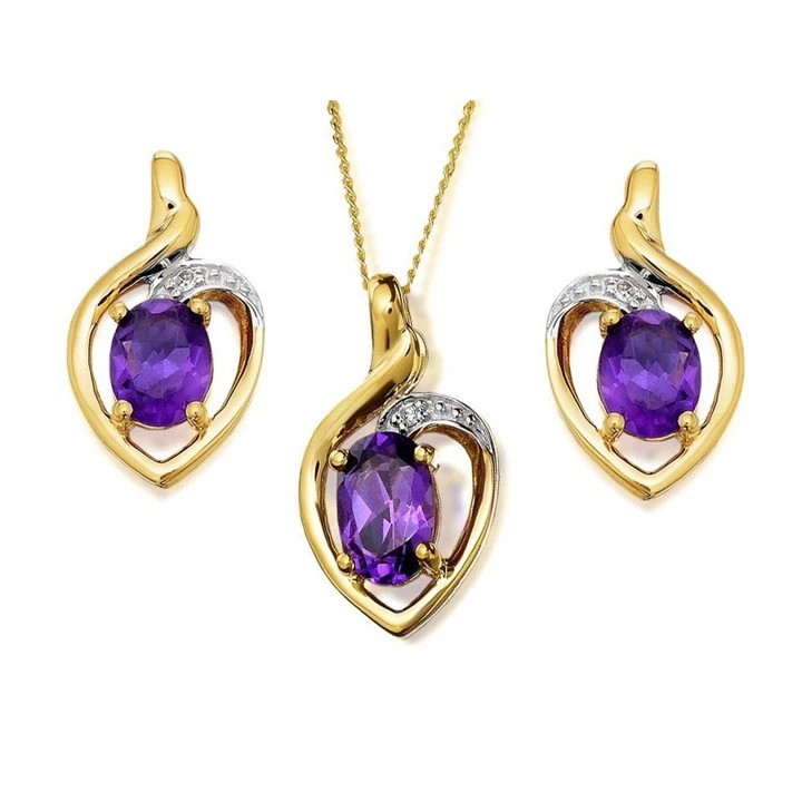 9ct Gold Amethyst And Diamond Earring And Pendant Set - GS0304