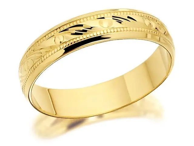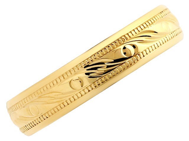 9ct Gold Beaded Swirls Wedding Ring - 4mm - R4285