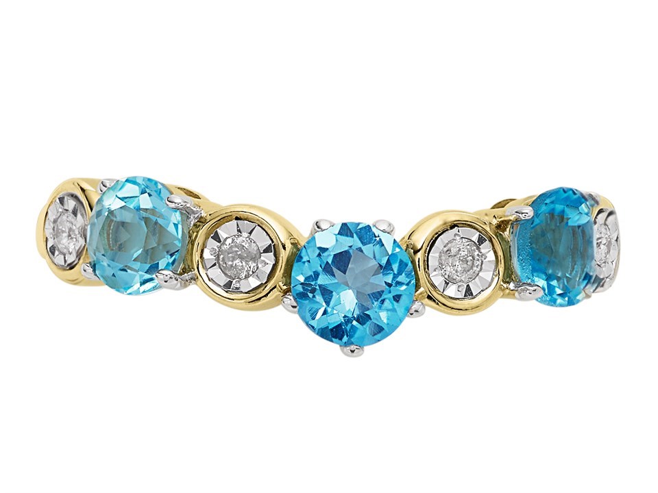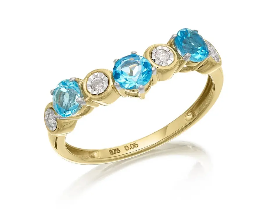 9ct Gold Blue Topaz And Diamond Wishbone Ring - D8313