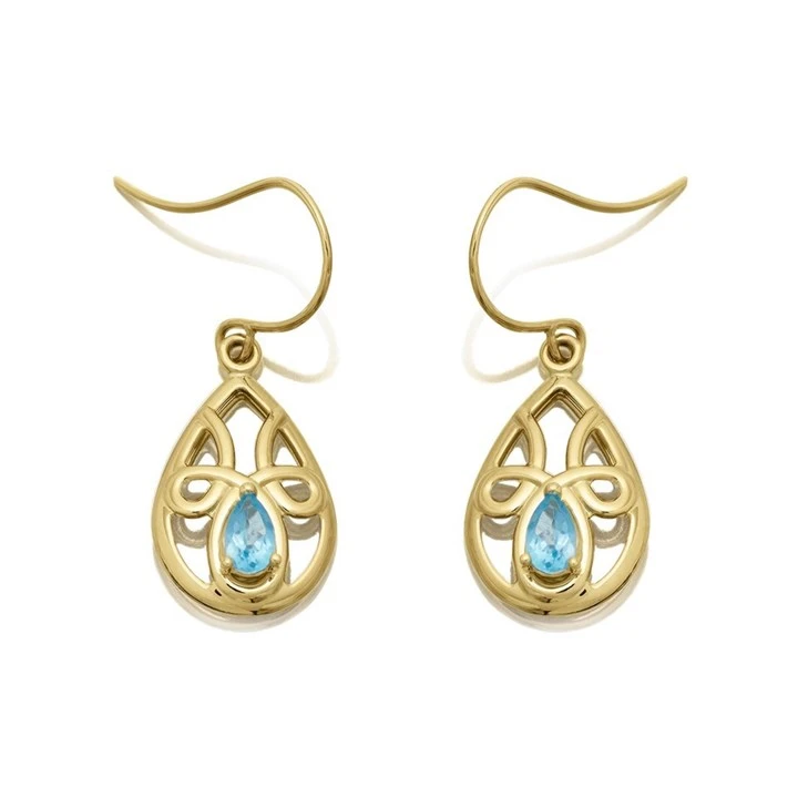9ct Gold Blue Topaz Celtic Hook Wire Drop Earrings - G1829