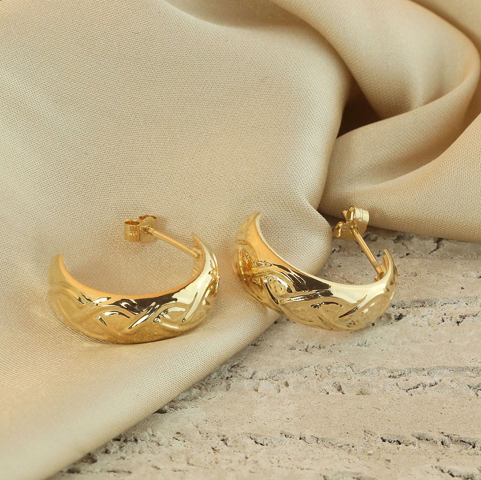 9ct Gold Celtic Half Hoop Earrings - 18mm - G2576