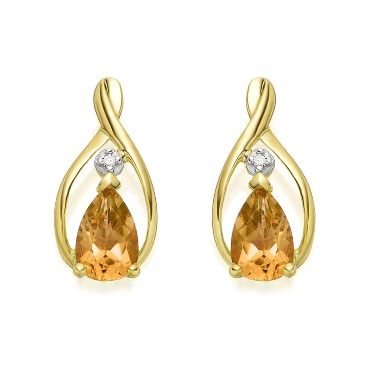 9ct Gold Citrine And Diamond Stud Earrings - G0310