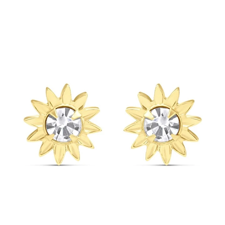 9ct Gold Crystal Sun Stud Earrings - 7mm - G0686