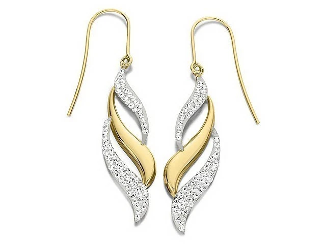 9ct Gold Crystal Triple Flame Hook Wire Earrings - 30mm drop - G1025